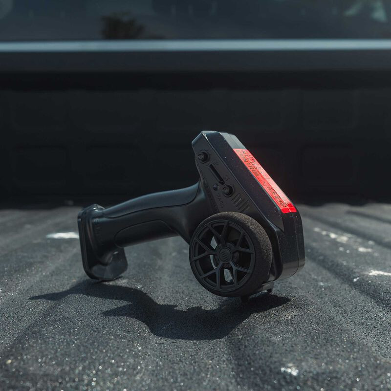 A emissora Spektrum SLT2 incluída está perfeitamente equilibrada para um bashing sem fadiga e tem uma roda de espuma para um controlo preciso na ponta dos dedos. Os bashers menos experientes podem definir os limites do acelerador em 50% ou 75% até estarem prontos para utilizar todo o potencial de velocidade do monster truck.