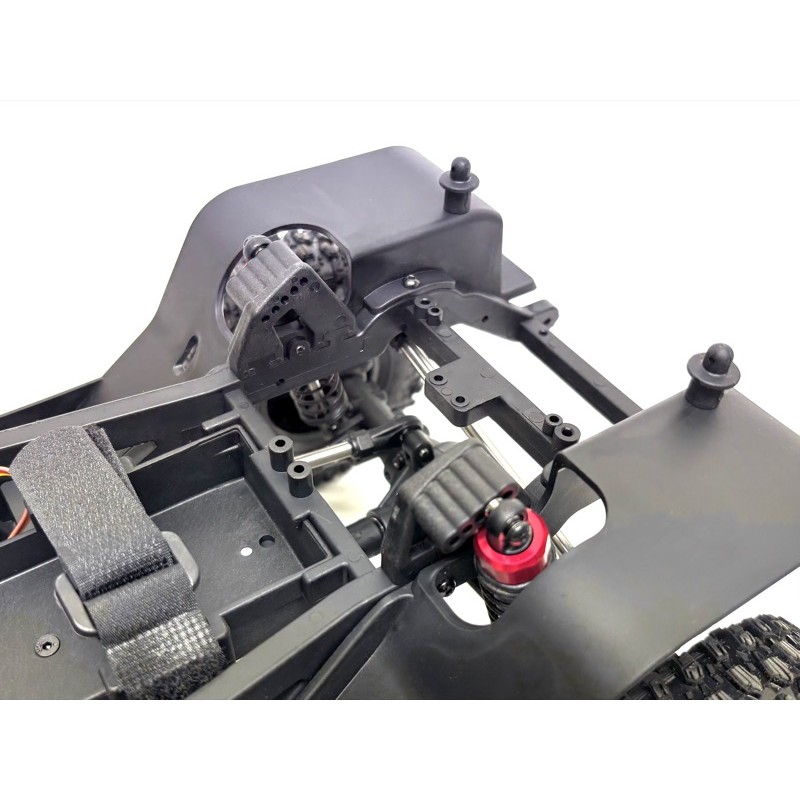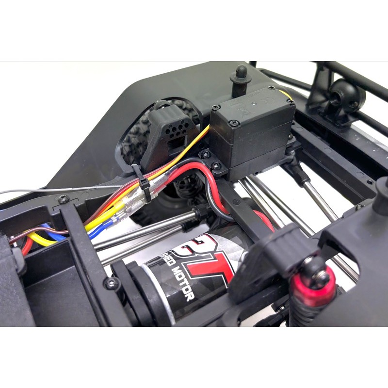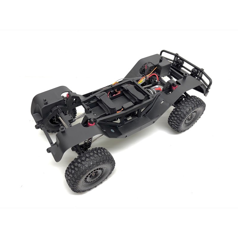 O nosso chassis CR4.4 é construído sob a carroçaria, o que significa que é muito robusto e pode enfrentar os obstáculos mais difíceis fora de estrada! A potência é fornecida por um motor de escovas 32T 550 de elevado binário e um controlador à prova de água com capacidade para 2-3S, que transfere a potência através de um diferencial central robusto e da unidade de tração com rolamentos de esferas.