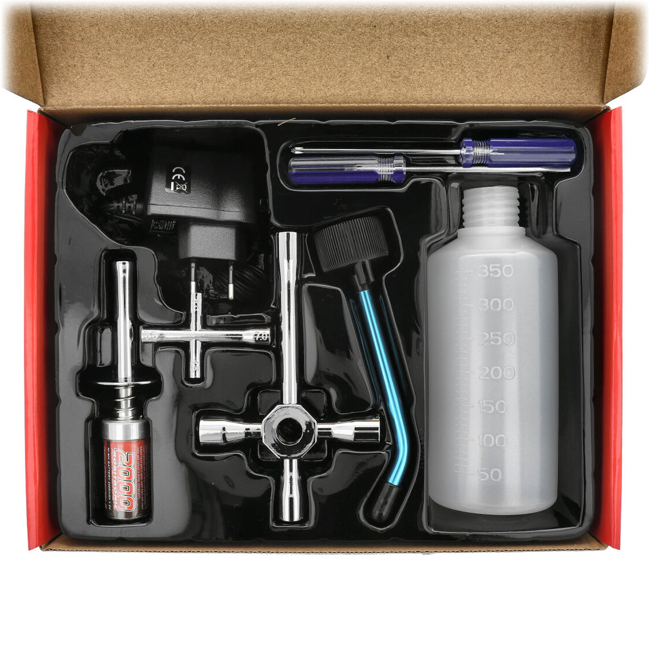 A practical and affordable set with everything you need to get your nitro-powered RC car up and running quickly and easily. This set also includes almost everything required for regular maintenance. Excellent value for money.