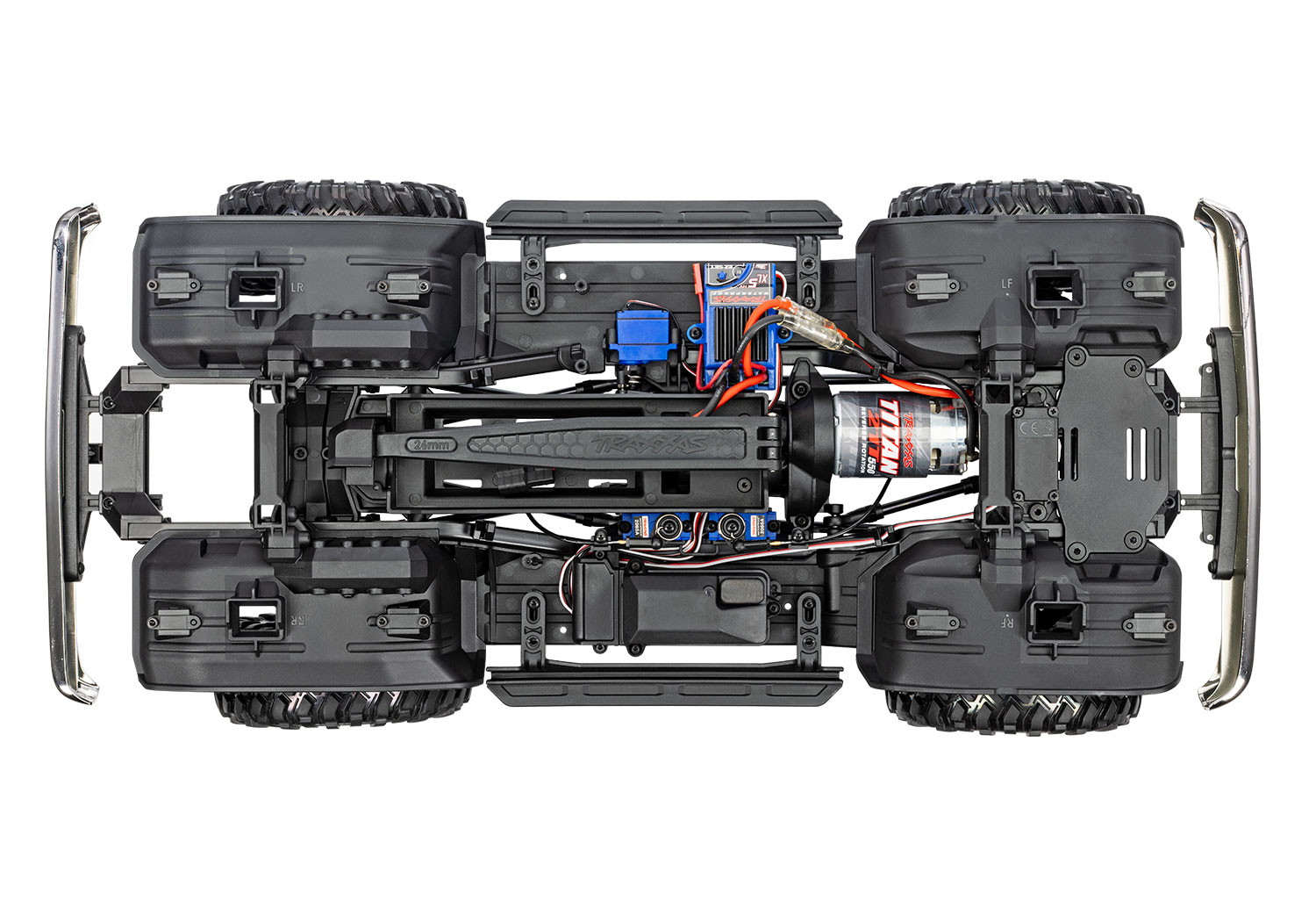 O TRX-4 aceita uma ampla variedade de baterias NiMH (4 a 7 células) e LiPo (2 a 3 células).