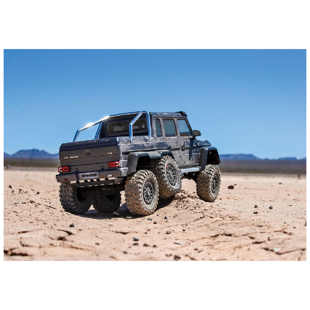 O TRX-6 Mercedes-Benz G 63 AMG 6×6 reproduz fielmente um dos veículos todo-terreno mais exclusivos e reconhecíveis já criados. Detalhes cromados, acabamentos moldados e elementos de iluminação finamente detalhados realçam a rica pintura metálica. A atenção intransigente da Traxxas aos detalhes eleva o TRX-6 à expressão máxima de beleza e força.